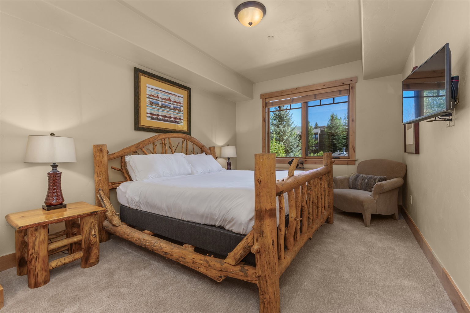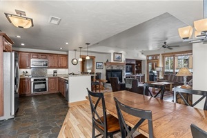 Step into Serenity: Unwind in this spacious 3-bedroom, 3-bathroom condo adorned with rustic charm and modern comforts. Vaulted ceilings, exposed beams, and a cozy stone fireplace create the perfect atmosphere to relax after thrilling days on the slopes.