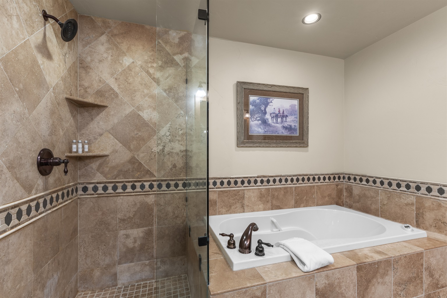 Bedroom #1 – King Bed, HDTV, Ensuite Bathroom #1 (jetted tub & stand alone shower)