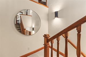 Accessing the Property – 1 step to enter the home from the garage & front door to access the ground level. 1 full flight of stairs to reach the upper level. Elevator from the garage to the upper level.