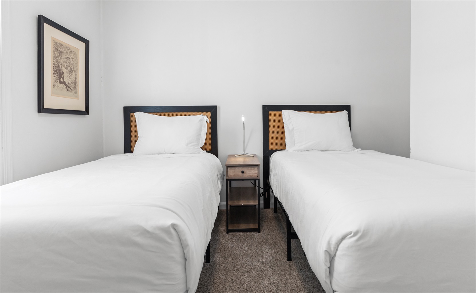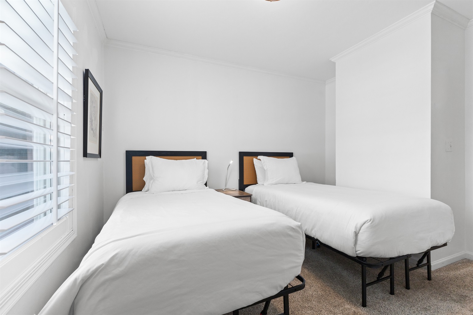 Bedroom 2: 2 twin beds with adjacent full bathroom