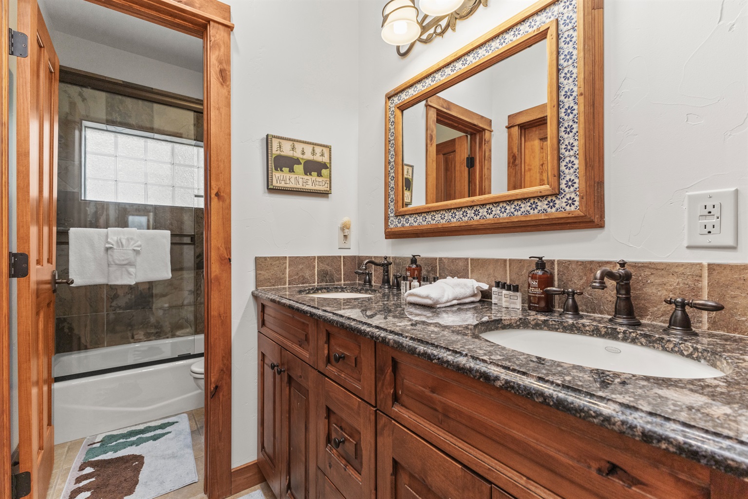 Bedroom 3 – Queen Bed; Shared Bathroom (Tub/Shower Combo)
