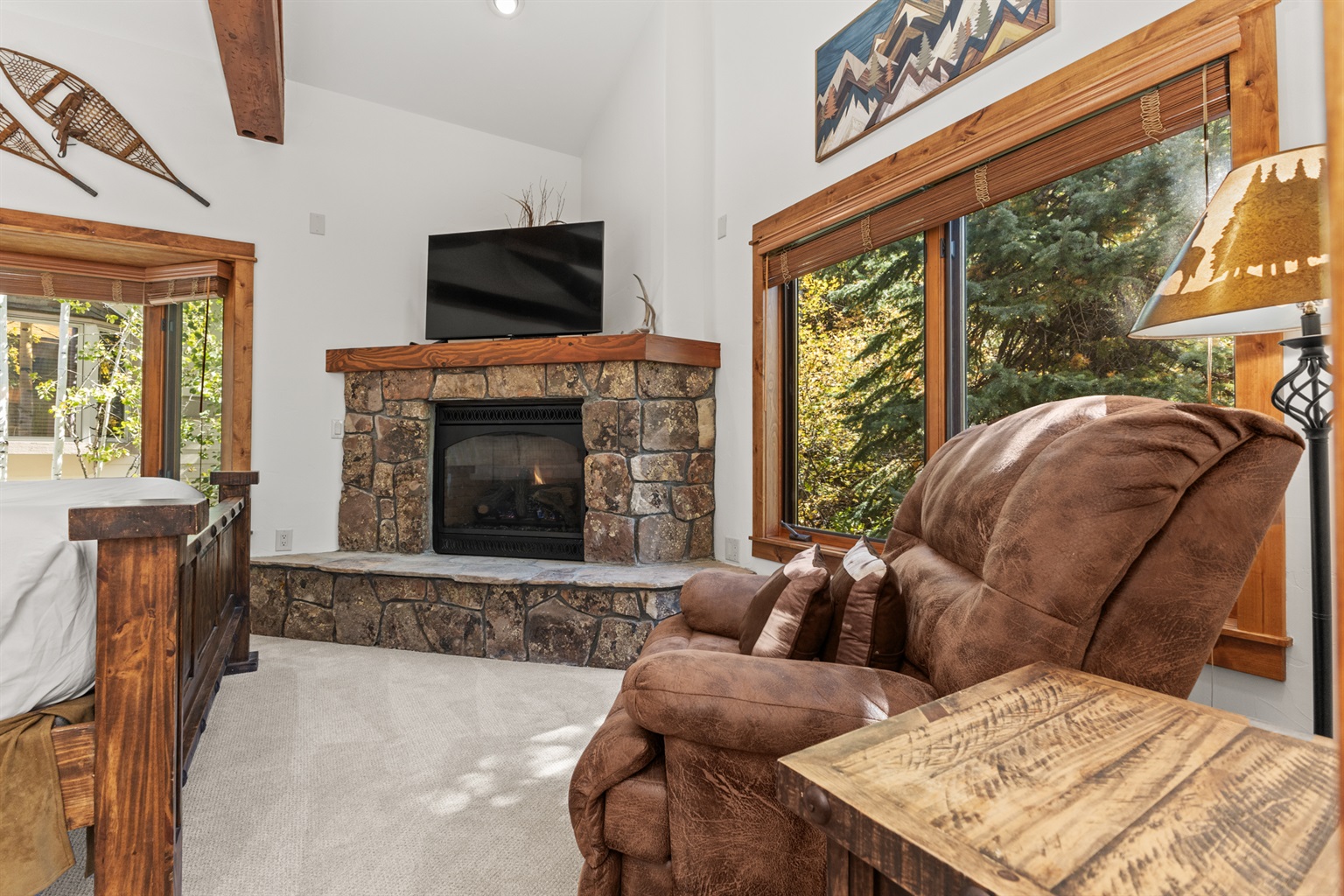 Bedroom 1 – King Bed, Gas Fireplace, HDTV, Walkin closet; Ensuite Bathroom 1 – Large soaking tub, steam shower, dual sinks, water closet