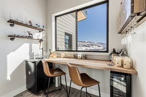 Chef's Kitchen: Cook up a feast in the fully equipped chef's kitchen, complete with a 6-burner stove, quartz countertops, and a fridge that has a Craft Ice setting—perfect for crafting high-quality cocktails for après. And for those who enjoy a drink with a view, the bar with sweeping mountain views is the perfect spot to unwind.