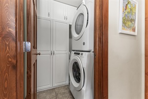 The open living area offers a cozy place to gather after a day outside, while the well-equipped kitchen and dining space make it easy to enjoy meals at home. A private washer and dryer add convenience for longer stays and ski season visits.