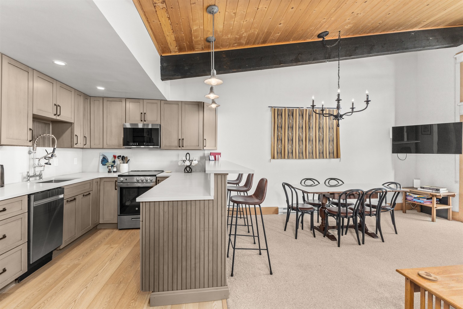 The fully upgraded cook’s kitchen is a standout feature, complete with high-quality cookware, sharp knives, modern appliances, and all the essentials needed for true at-home cooking. Whether you're preparing après-ski comfort food or a hearty breakfast before hitting the slopes, this kitchen is designed for those who love to cook.