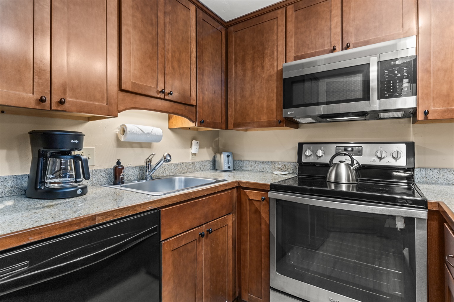Kitchen: Fully equipped | Oven | 4-burner electric stove | Microwave | Dishwasher