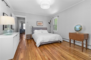 Ensuite Bedroom #1 – King Bed | Private office space | Washer/Dryer