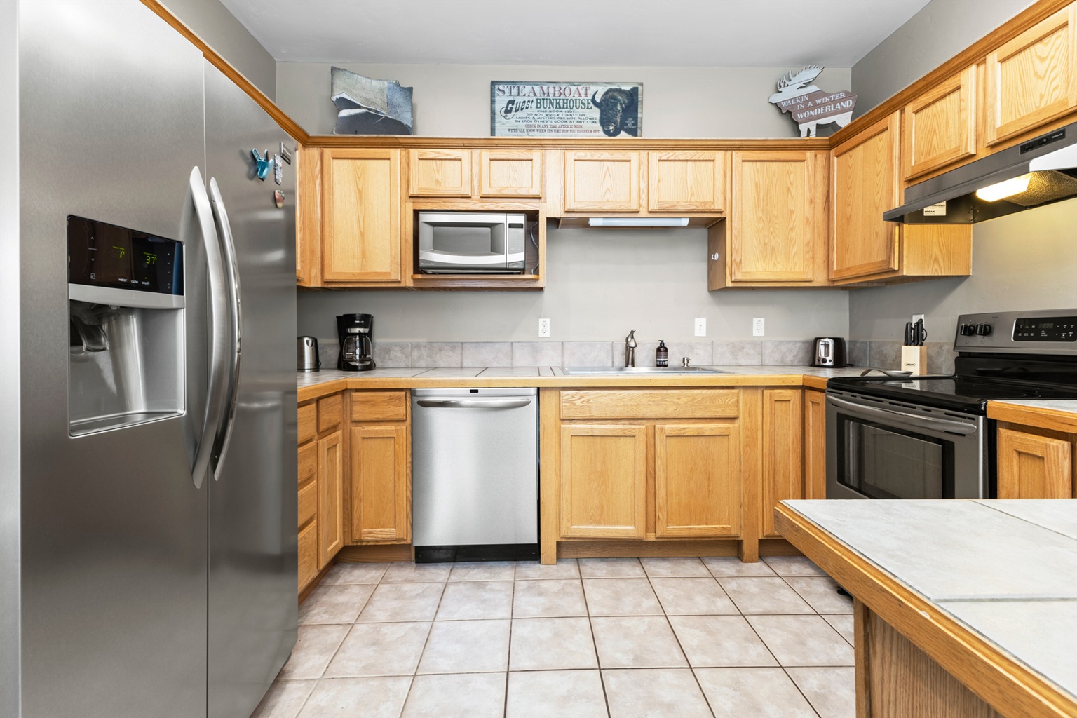 Amenities Galore: Discover a wealth of amenities, including streaming Smart TVs, a BBQ grill on the covered deck with mountain views, a fully stocked kitchen with stainless appliances, a cozy gas fireplace, and a full-size washer/dryer.