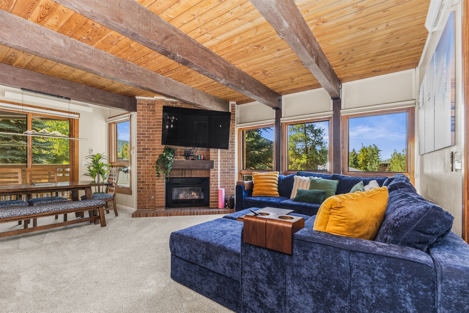 Living Area – Gas fireplace, HDSmartTV with installed streaming apps, Nintendo Switch