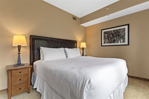 Bedroom #1 – King bed, HDTV, ensuite bath with toilet, walk-in shower & soaking tub