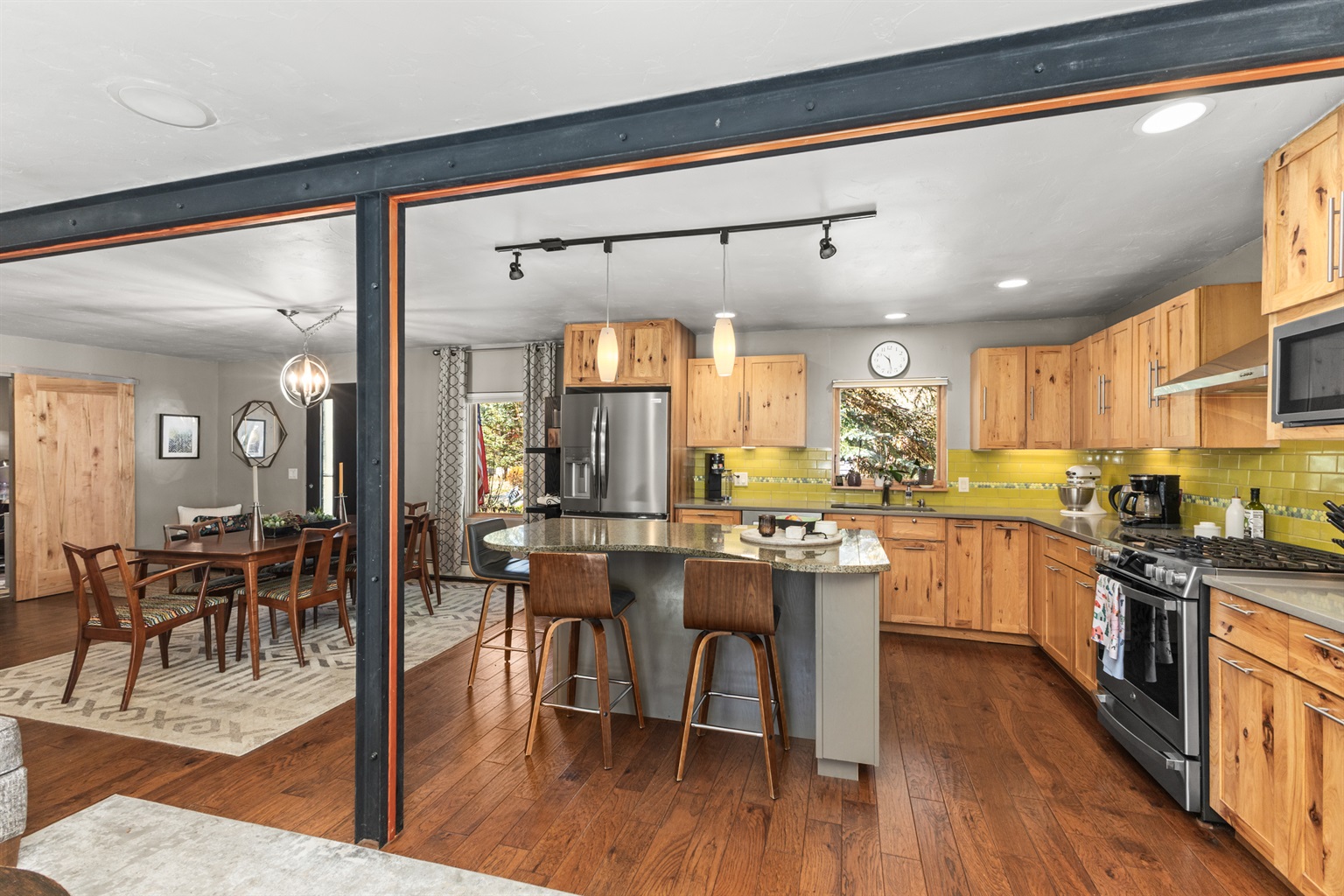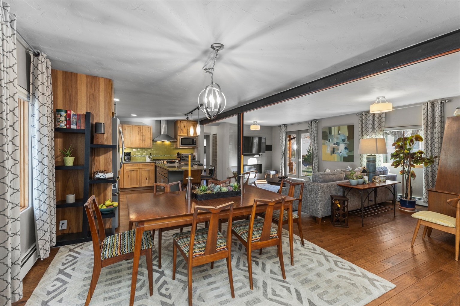 Step into a bright, thoughtfully designed home featuring an updated kitchen with gas stove, stainless steel appliances, and plenty of counter space for preparing meals after a day on the mountain. The open living area offers cozy seating, a Smart TV, and access to the private yard—perfect for enjoying Steamboat’s sunny days or cool evenings under the stars.